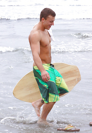 Horny surfer Joshua strokes dick