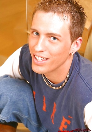 Cute twink with sexy blue eyes showing off his hot smooth body.