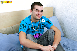 Hot brunette boy Sean strokes dick