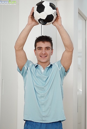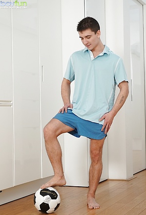 Ryan Code strokes his beautiful uncut cock after playing soccer.